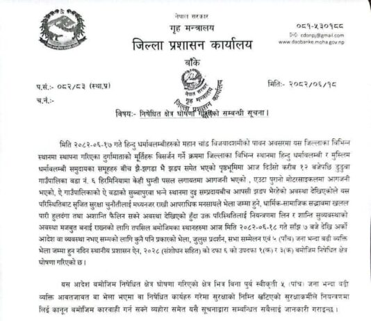 बाँकेका विभिन्न स्थानमा निषेधाज्ञा जारी