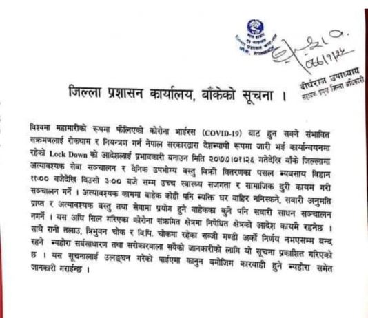 बाँकेका विभिन्न स्थानमा निषेधाज्ञा जारी