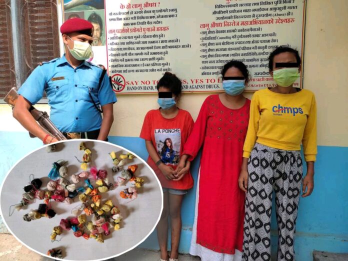 अबैध लागू औषधको कारोबार भैरहेको छ भन्ने विशेष सुचनाको आधारमा यस जिल्ला प्रहरी कार्यालय बाँके तथा लागू औषध नियन्त्रण ब्युरो नेपालगंज शाखाबाट खटिएको संयुक्त प्रहरी टोलिले उक्त स्थानमा गई खानतलासि गर्दा निम्न स्थान बस्ने निम्न ३ जना महिला र १ जना पुरुष जना ब्यक्तिहरुको साथबाट प्लाष्टिकले सानो पुडिया बनाई राखेको ५६ पुडिया (१२ ग्राम २०० मिलिग्राम) ब्राउन सुगर जस्तो देखिने धुलो पदार्थ र नगद रु एक चालिस हजार पाँच सय रकम सहित फेला पारी बरामद गरी निजहरुलाई नियन्त्रणमा लिई सम्मानित जिल्ला अदालत बाँकेबाट ७ दिन म्याद थप गरी आवश्यक अनुसन्धान एवं कारवाही अघि बढाईएको छ।